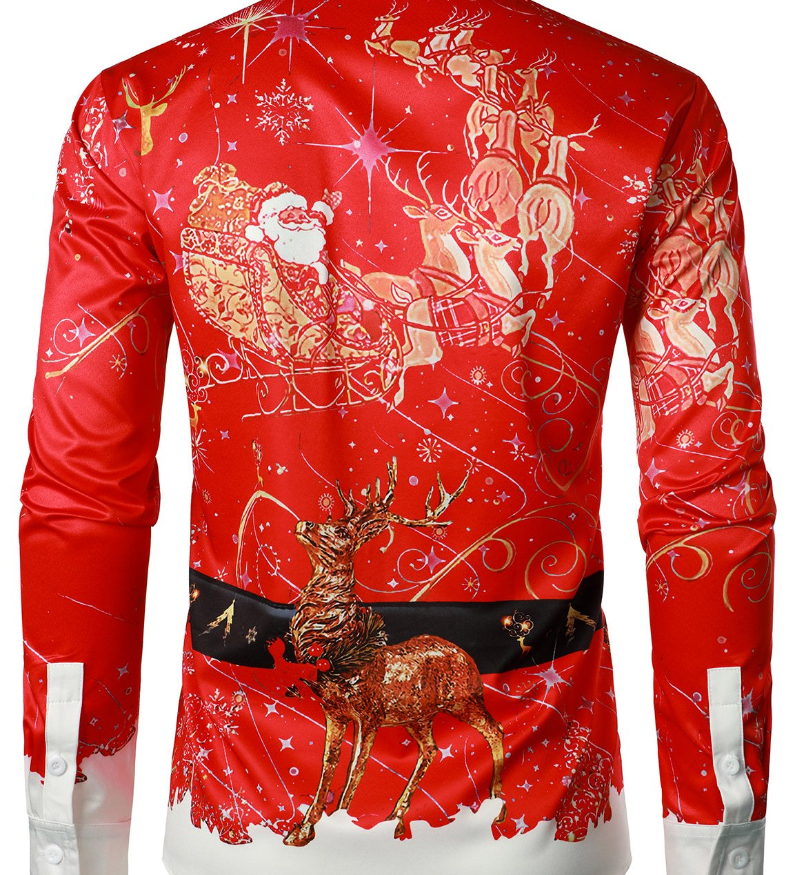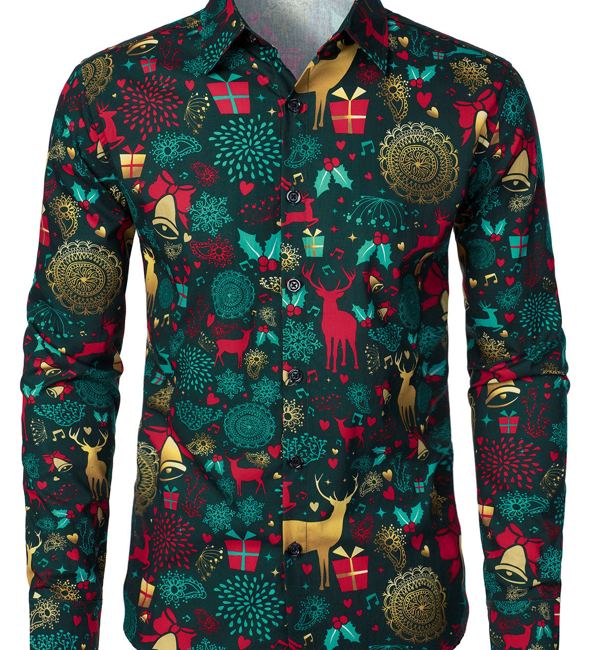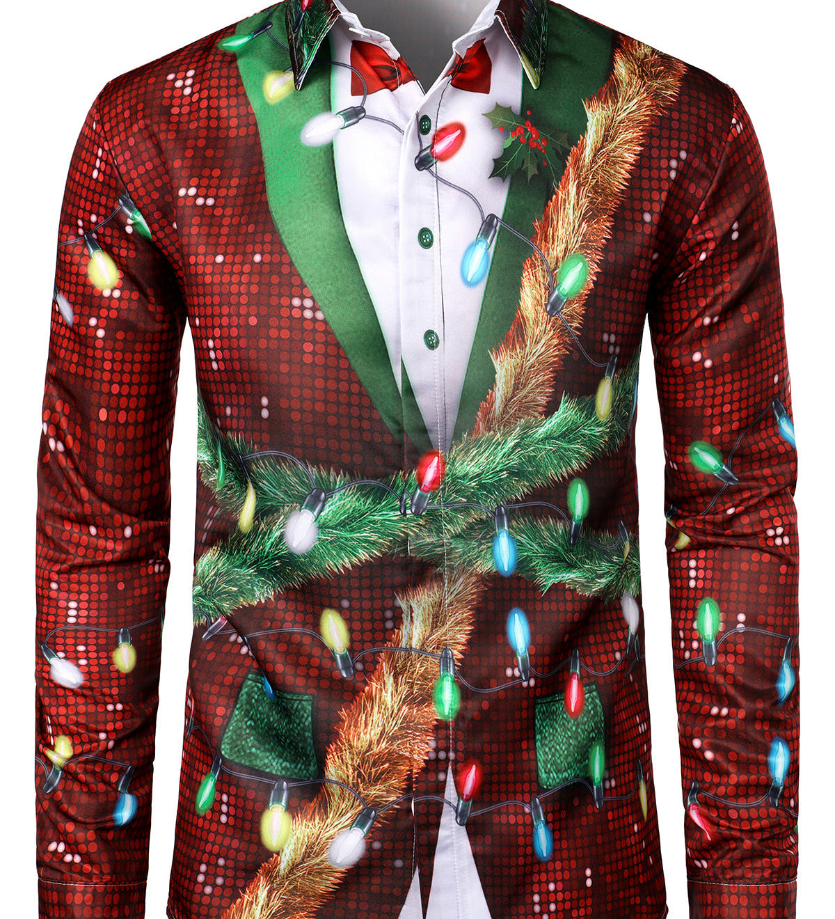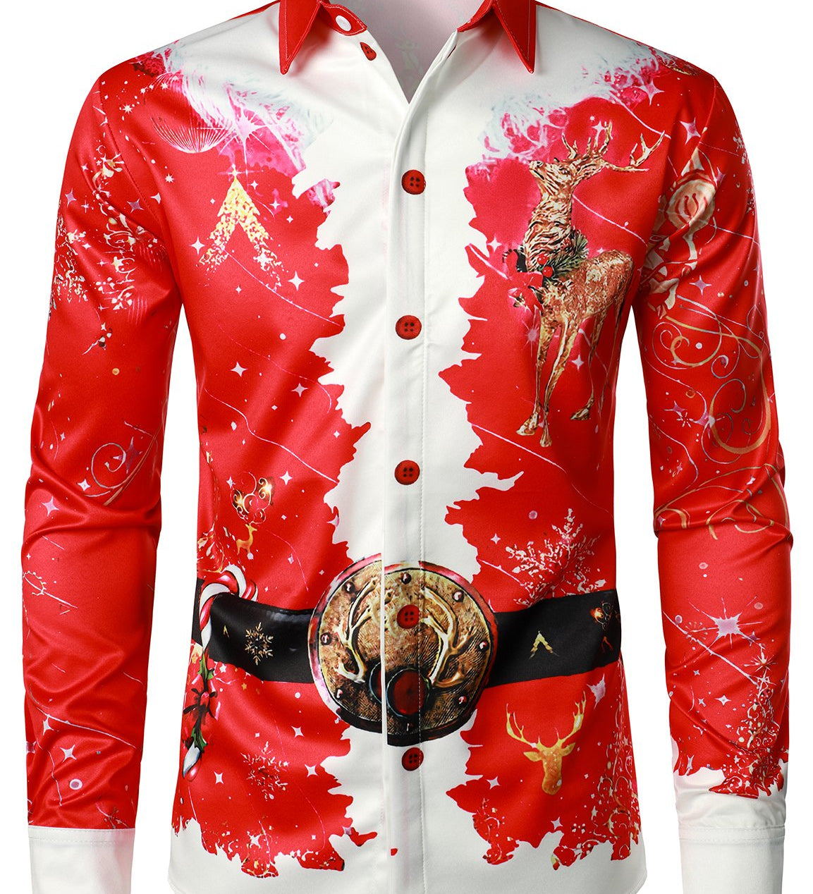 Mænds juleinspirerede top rød sjovt outfit ferie knap-ned langærmet skjorte