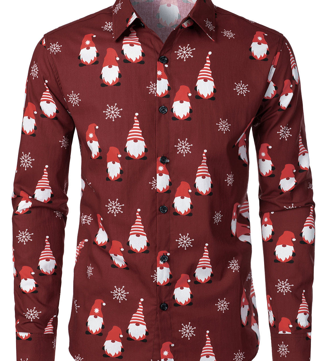 Herre Julemand Knap-Up Sort Sjov Langærmet Skjorte