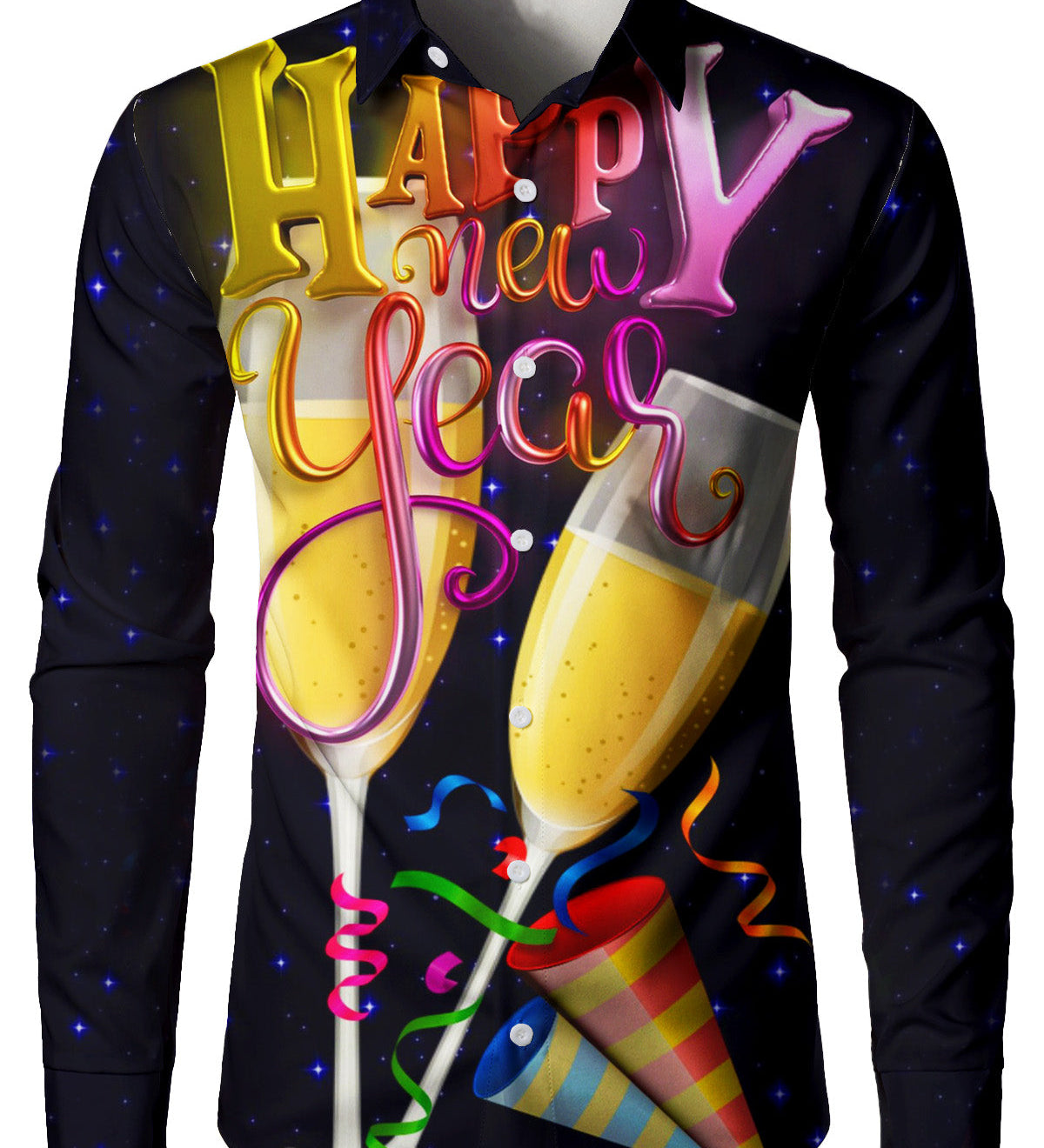 Mænds Sjove Nytårsaften Langærmet Julecocktail Skjorte
